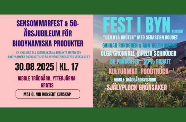 21 augusti, 2025Det är sensommar, alla vänder åter och vi har något stort att fira..! I över 50 år har Järna varit ett unikt nav för kvalitativ mat som skapar mening. Redan på 70-talet samlades det i Järna en matrörelse som valt […]