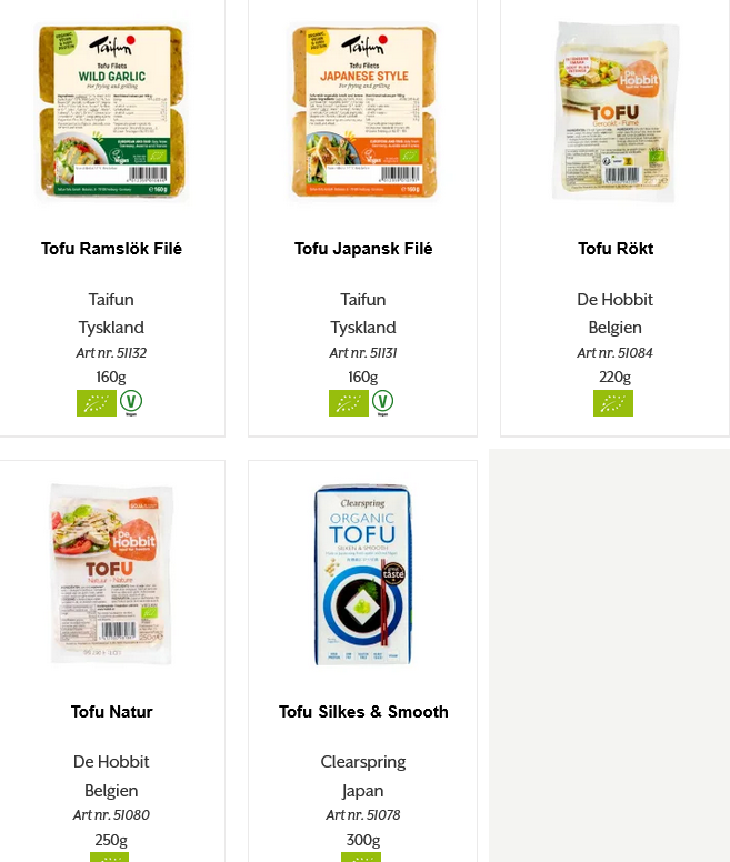 Nu har vi ett mindre sortiment av tofu i lager. [...]