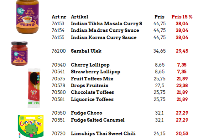 Passa på och fynda Utgående produkter från; Naturfrisk, Spielberger, Barnhouse, Udea, Persgårdens, Byodo, Beutelsbach. Gäller för leveranser under vecka 23-25. Med reservation för slutförsäljning.