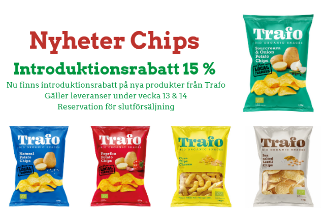Kampanj introduktionsrabatt 15% på chips från Trafo Gäller för leveranser under vecka 13 & 14 Reservation för slutförsäljning