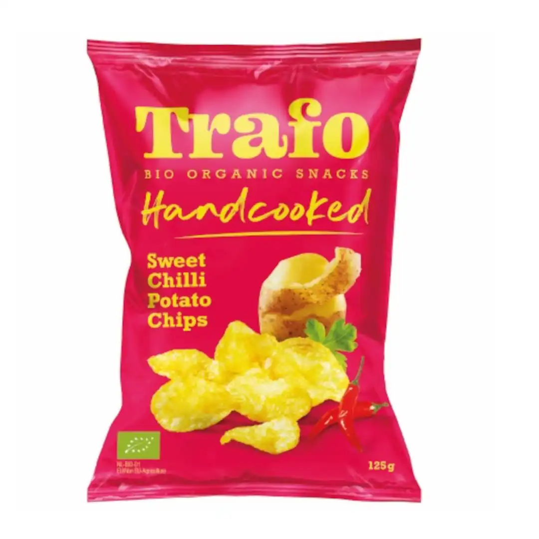 Handcooked-chipsen med söt chili har en lätt söt smak med en kryddig eftersmak och är krispiga