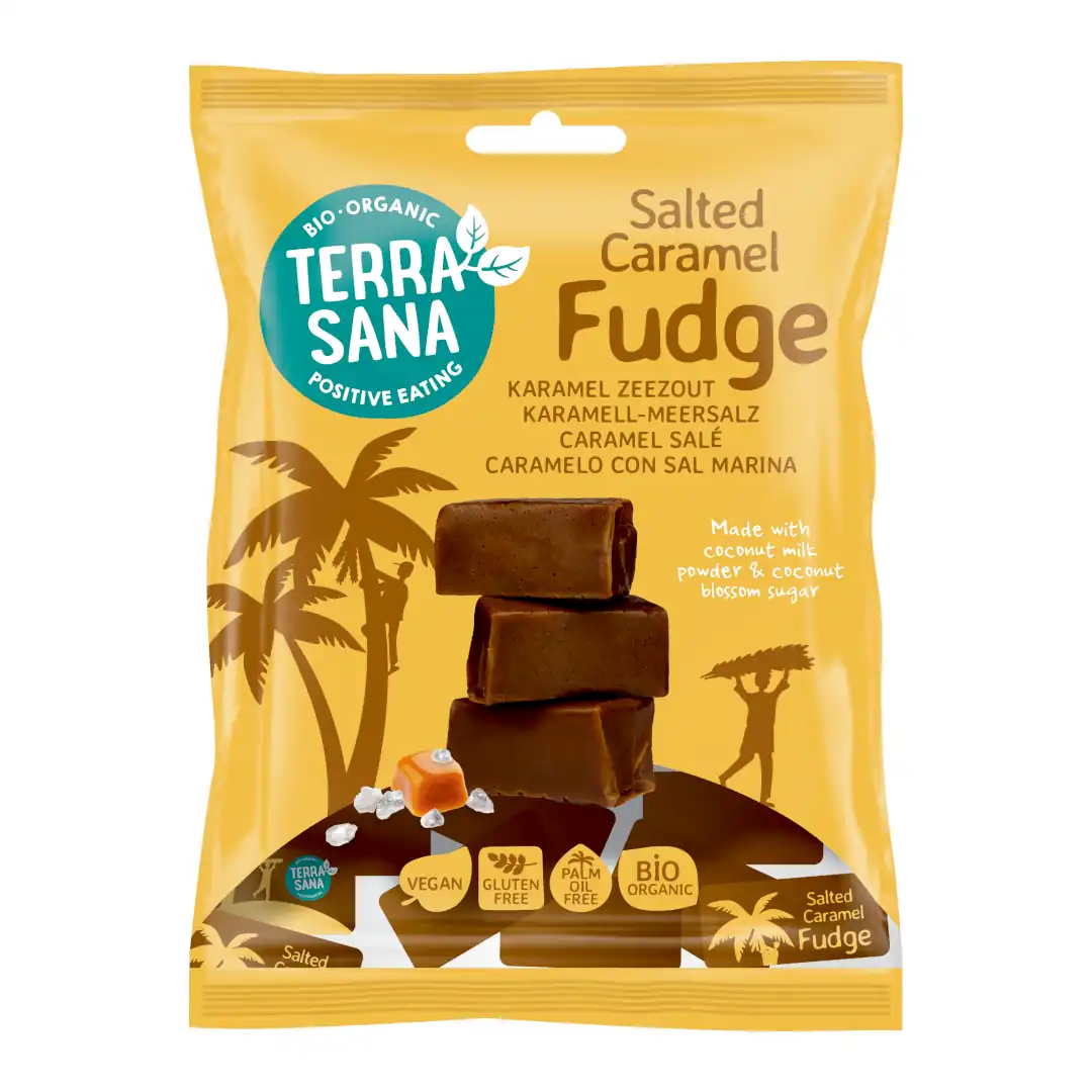 Ibland längtar man bara efter något sött. Denna fudge är en ansvarsfull godbit med salt karamellsmak. När du tar en tugga upplever du en fast krämighet som du inte kan få nog av. Och det är okej, för vi har hållit denna ekologiska fudge så ren som möjligt. Inget vitt socker, bara oraffinerat kokosblomssocker. Ett bra alternativ till vanliga sötsaker, även för barn!