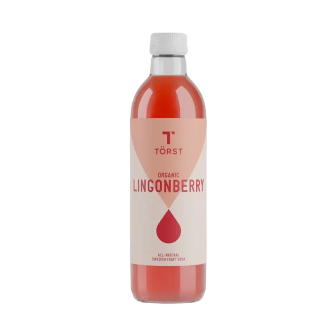 Vår LINGONBERRY tillverkas uteslutande av handplockade nordiska lingon, skördade i orörda skogar där de växer naturligt utan bekämpningsmedel eller gödningsmedel. Bären pressas varsamt för att bevara sin klara röda färg och friska, uppiggande syra – och utgör hjärtat i en läsk som är lika ren som uttrycksfull.