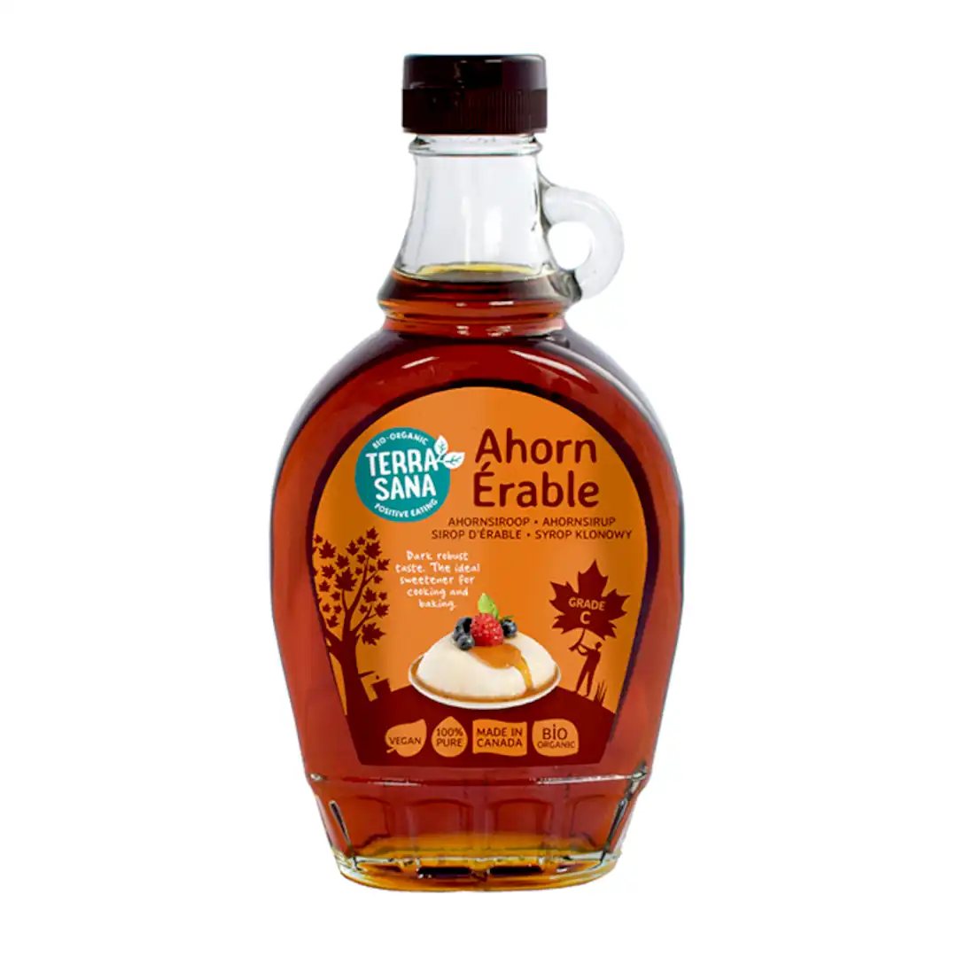 Ren ekologisk lönnsirap 100% klass C från Kanada, vegansk, glutenfri, jästfri och utan salt.