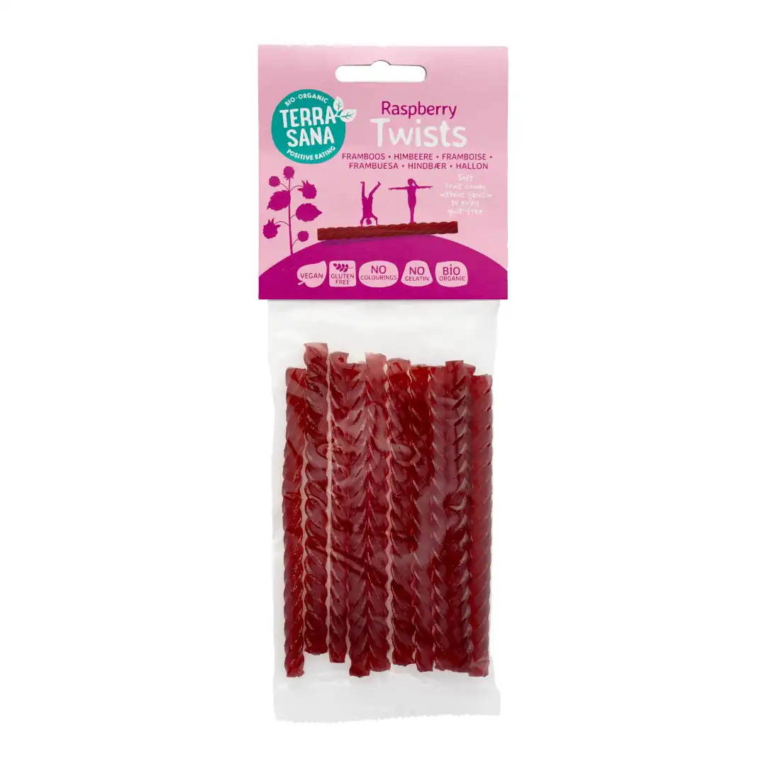 Remmar med hallonsmak är både goda och ansvarsfulla. De ser ut som polkagrisar och har en mjuk och fast konsistens. Godis utan gelatin, utan salt och utan färg- och smakämnen. Perfekt om du vill ha något sött ett tag, men inte vill kompromissa med hållbarheten.